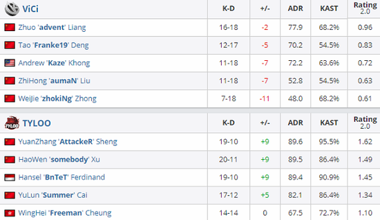 来到下半场Frank一夫当关,一人四杀为VG续命,VG成功拿下3分后却在关键的长枪局犯下错误,VG的A区下包3v2守包被白菜与Freeman携手完成,之后的VG再无机会,14-6的关键长枪局也被长管的白菜全部杀完,最终TYLOO以16-6击败VG成功拿到DreamHack马尔默的中国区门票。