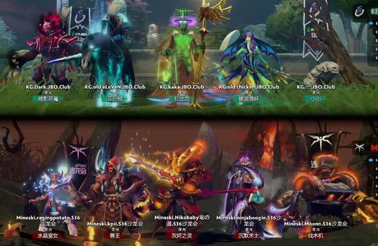 本场比赛双方都选出了一套比较艺术的阵容,Mineski祭出了四号位卡尔,而KG则是选了大哥拉希克和中单马尔斯。