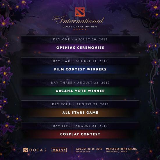 当然了,每年TI除了比赛之外,还有一些其他的活动。比如在8月20日开赛前,梅赛德斯奔驰文化中心将会举行盛大的开幕式。21日会揭晓短片大赛冠军,22日会公布今年至宝投票的冠军,23日则是全明星赛,24日会有Cosplay大赛。