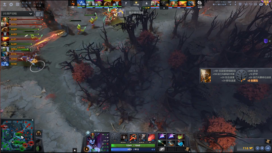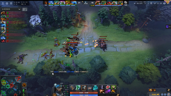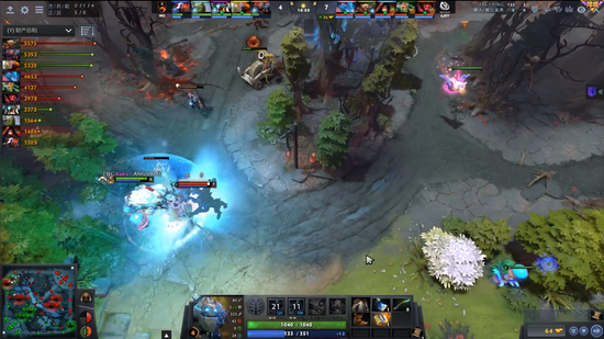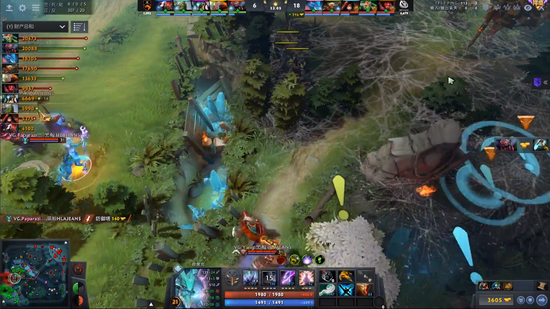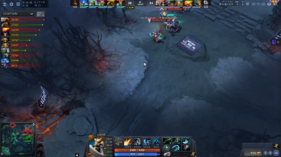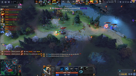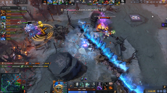 进入中期由于VG缺乏小点控和先手,节奏一直是在TNC手里。剑圣加小鹿的奶推体系也因为冰魂的存在而不太好施行。好在17分钟TNC开雾进攻被小鹿破雾,小鹿一个推推秀了女王,女王空大,VG反打,猛犸踩大两个,VG交出了一个小鹿换掉TNC四个人,将局势打了回来,团队经济领先到4K,剑圣爆炸肥全场领跑。
