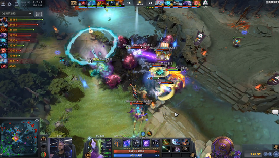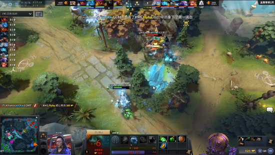前期对线上虽然下路A队的虚空被敌法师压制了补刀,但在中路和上路都是A队占据优势,尤其是上路的飞机,在冰女的帮助下飞机数次完成击杀,补刀也很多,是无解肥状态。