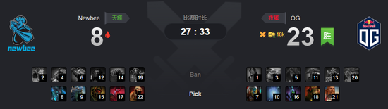 32分钟,大树隐身蹲到带线的火猫留魂处,大招开团,骗出斯温的BKB,其他人则在后路包抄,找到后排的小鹿直接秒杀,NB溃败猛犸跳拱斯温,OG再次入泉洗澡,NB依旧没有还手余力,敲出GG。