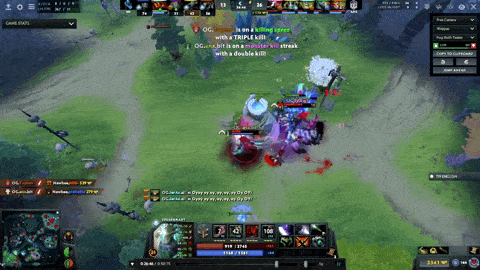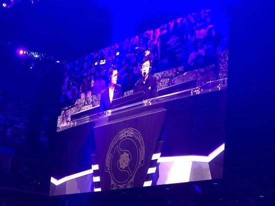 我发现还有很多人好奇现场能不能看到这些立体的游戏人物,其实这是AR,现场的也是在屏幕上才看得到的啊。而第三个能够和观众联动的就是CEB了,游戏开始前只要镜头给到他,就是全场“CEEEEEEEEEEEB”!毕竟长度体现了你的财富。最终OG在满屏幕的上帝段子中轻取了Newbee,有多轻一个场景就能完美的体现。