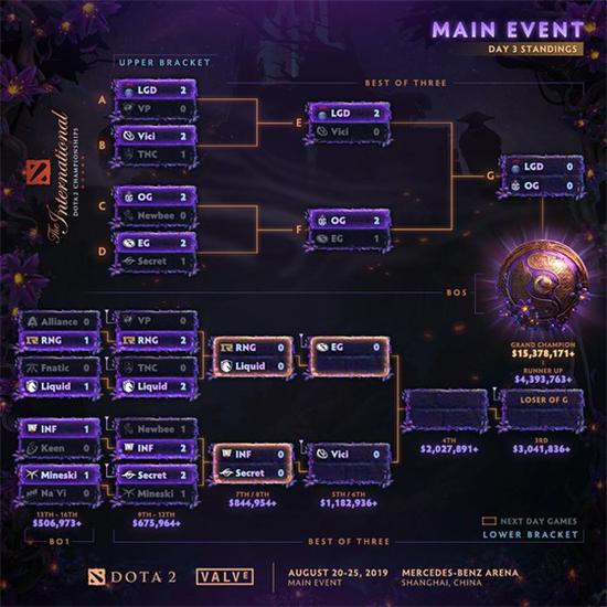 TI9淘汰赛进入了第四日。将有三场比赛上演。由于三场都是败者组比赛,所以意味着将有三支战队离开TI9的舞台。