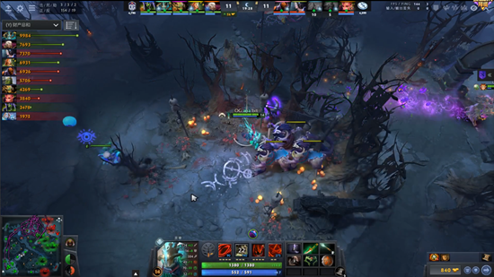 前期EG三路都打出了优势。TB在冰女的保护下补刀完美,下路的小鹿打一个牛头毫无压力,而中路的火女打得非常有侵略性,不但单杀了卡尔,还喊来队友压制卡尔的发育。7分钟时EG推掉OG下路一塔,团队经济领先来到了3K。
