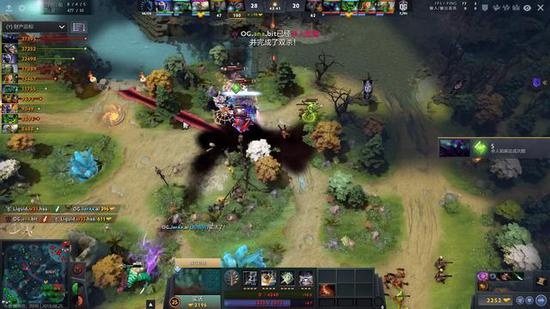 也许是第一场比赛意外落败,OG拿出了一套线上强力阵容,由于四号位谜团需要打野发育,不到十分钟OG就开始全地图压着Liquid打。偶尔一波支援也无法打出太多的效果,直到10分钟OG一波上头冲圣坛,Liquid才有所起色,利用圣坛的快速支援将火猫击杀,之后其他人没有了主心骨打团灭。