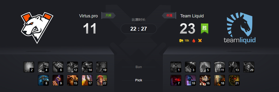 如果说液体在赢的两局比赛中让我们见识到了“机器人DOTA”,那么在VP获胜的第二局中,666的TB将俄罗斯人的野性发挥到了极致。10分钟的时候,Solo的沉默就吸了足足16点智力!15分钟的下路团战,液体的冰女和猛犸有着近乎完美的大招配合——但潮汐的反手大招也爆炸了!液体打赢了一场战斗,却输掉了一场战役。残局,敌法师未能用大招炸死沉默,反而是在中路逗留的TA被VP抓住。局势被VP掌控后,留给液体的时间越来越少。后期,MC连续两次抢下肉山盾,但液体却在紧随其后的肉山团战中成为了TB的活靶子。高地团战,TB用换血躲开了奇迹哥的袭击。大恶魔来袭,666还是为VP赢下了一个小分。