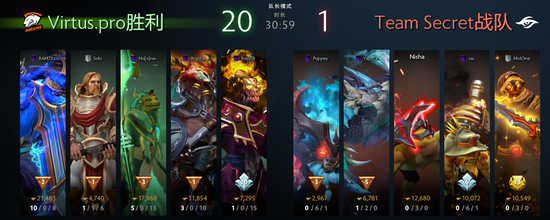 关于液体和LGD的比赛,能说的东西还有很多。就譬如奇迹哥破釜沉舟的那把圣剑,以及GH用小精灵完成的极限救人。不过,这里还是让我们直接进入秘密和VP的对决,因为这场比赛的精彩程度有过之而无不及。BO3的决胜局,Solo为我们展示了五号位全能的正确打法——对线越兵线赶人,团战龟缩后排。全能骑士与死灵法组成了完美的双奶体系,秘密拿这两个“奶爸”毫无办法,只能眼睁睁地看着防御塔逐个沦陷。至于上路唯一一波有可能翻盘的团战,罗杰的毒狗也在关键时刻用禁锢救下被冰龙诅咒的死灵法。两个“奶爸”的奶量太足了,如果不是Solo哥情谊了一波,秘密甚至连一个人头都拿不了!比赛结束,比分定格在极度讽刺的“二十比一”。