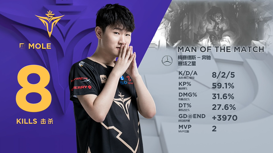 事实上,V5战队打法的多变,不仅在于双中单摇摆的特色,更在于优秀的临场应变能力。对战IG时,Mole凭“诡术妖斯”单杀IG中上,Windy用“最强亚索”杀翻峡谷,异于常规的打法让人大呼过瘾。加之,Ad位y4使用琴女稳定输出,四杀终结比赛,打野ben4各种花式套路齐放,都让这支年轻的战队充满了无限可能。Mole和Max更获得了官方认定的第四周最佳选手,新人辅助Max三夺MVP,表现不俗。