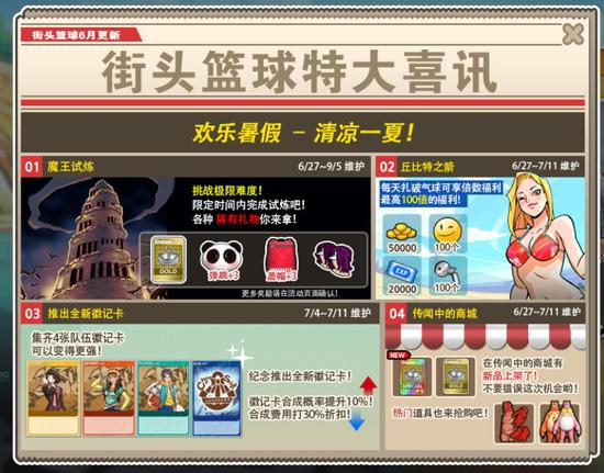 《街头篮球》暑期全新版本6月27日正式上线,魔王的试炼谁能胜出,队伍徽记卡正式上线,传闻中的商城来临,丘比特之箭射中你所想要的,让我们一起来了解一下魔王试炼吧!
