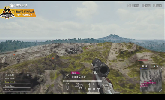于是,最后一局比赛开始了,Rstar运气不错,在地图西部开搜,之后上山,直接占据圈中心得天独厚的位置。