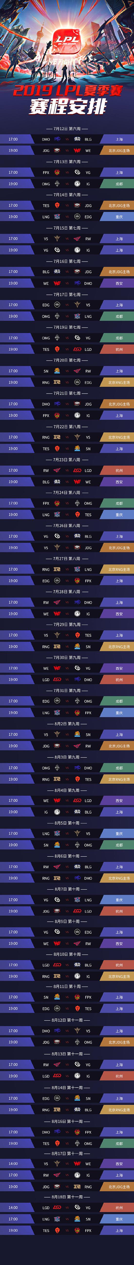 因为英雄联盟洲际系列赛中的亚洲对抗赛将在北京时间7月4日开始,所以在本月30日第五周比赛结束后,LPL夏季赛的第六周将会在洲际赛后的7月12日继续开赛,届时北京时间17:00将由DMO和BLG打响第六周的首战;晚上19:00则是JDG坐镇主场迎战WE。同时由于洲际赛的举办,所以第六周的比赛日只有3天。7月14日的LPL第六周收官战将由EDG前往重庆挑战LNG。
