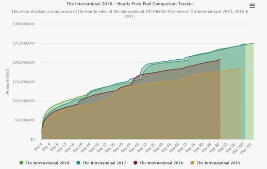 55天就超越了Ti8的2553万美金,同比领先600多万,增幅高达25.6%,再一次刷新了增速奇迹。