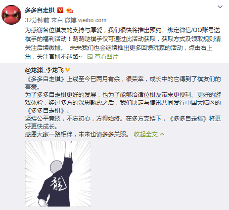 为了多多自走棋更好的发展,也为了能够给诸位棋友带来更便利、更好的游戏体验,经过多方的深思熟虑之后,我们决定与腾讯共同发行中国大陆区的《多多自走棋》。