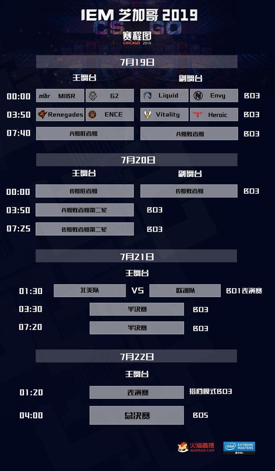 由火猫全程直播的CS:GO IEM芝加哥站,将于北京时间7月19日凌晨正式开战。本次比赛是第三届英特尔大满贯的第一站,也是Major前的最后一个大师级赛事。Liquid、ENCE、Vitality、G2、MIBR等一众知名战队将落地芝加哥进行为期四天的比赛。各战队摩拳擦掌,战火即将点燃,精彩尽在火猫直播。