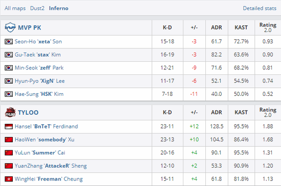 亚洲区Minor已经来到最后一日最后一场比赛,将由中国战队TYLOO与老对手MVP PK争夺最后一个直达Major的席位,双方分别选择了Dust2和Inferno,最后一张地图则是Mirage。