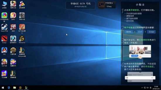 因为掌上网咖拥有自己的云电脑,那么自然无需你自配电脑,使用手机一键进入掌上网咖,就能畅玩PC上的所有游戏,包括WeGame、Steam、网吧游戏等一众平台上的游戏。手机秒变高配置主机,手机只需承担控制电脑的作用,代价是消耗少量的4G流量。