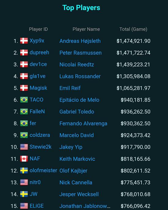 再来看看Stewie2K的职业生涯,从2015年开始职业比赛道路,先后效力过C9、Mibr以及目前正在效力的Liquid,自今年加入Liquid战队以来成绩斐然,成功拿到了英特尔大满贯的奖金,使得他成功跻身进入CSGO职业选手奖金排行榜TOP10。