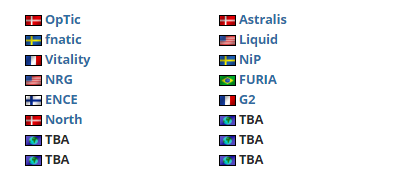 DreamHack马尔默大师赛将于10月1-6日进行,奖金池共计250,000美金,目前参赛队伍名单如下: