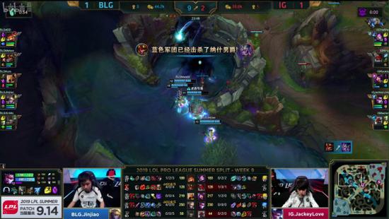 在纳尔TP回线后iG故技重施,再次组织三人包上。BLG忍无可忍,中野也赶到上路支援,虽然纳尔再次被击杀,但奥拉夫和妮蔻都被皇子和沙皇留下。拿到领先的BLG开始稳扎稳打的获取资源,iG试图绕后抓单也以失败告终。