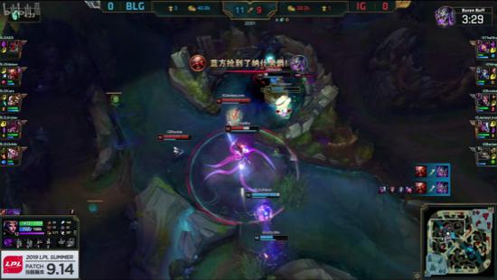 BLG击杀卢锡安后拿下土龙,iG再次选择Rush大龙,虽然大龙这次没有被抢,但赶来的BLG进入了EZ收割的时间,iG全员被团灭。