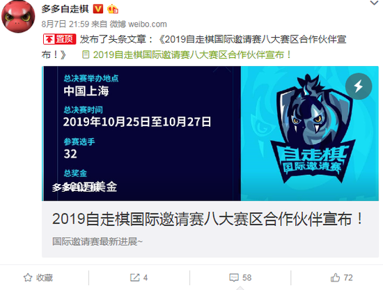 昨日《多多自走棋》宣布了今年十月份(Ti之后)即将到来的多多自走棋国际邀请赛合作伙伴的有关的消息。虽然截止目前场馆、赛制、观赛等问题官方都没有明确答复,但既然一直有在Cue这件事那相信"多多自走棋Ti1"应该是不会随随便便就鸽了的。