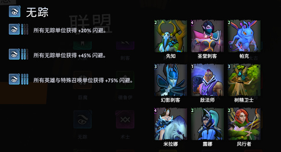 无踪:第 3 级联盟(9 名英雄)- 从“所有单位获得 +75% 闪避”变更为“所有英雄获得 +75% 闪避”。