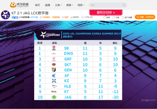 8月10日,LCK第九周周末大战正式开始。首战T1迎战HLE,继上一轮爆冷击败DWG后,HLE本场比赛再接再厉又一次成功爆冷,凭借新人打野BonO的爆炸节奏,他们鏖战三局击败T1终结对手的九连胜。第二场KT迎战JAG,面对HLE的紧追不舍,KT老将们本场比赛站了出来,凭借老队长Score的神勇发挥,他们二比一击败JAG重回保级区。