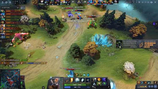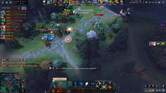 30分钟,VG先抓到了落单的船长,之后在一塔处团灭VP。之后双方在肉山坑附近再次开团,水人被羊秒杀,不过VG利用买活打赢了这波团,小鹿从头输出到尾。水人拿下不朽盾,电魂带上奶酪。