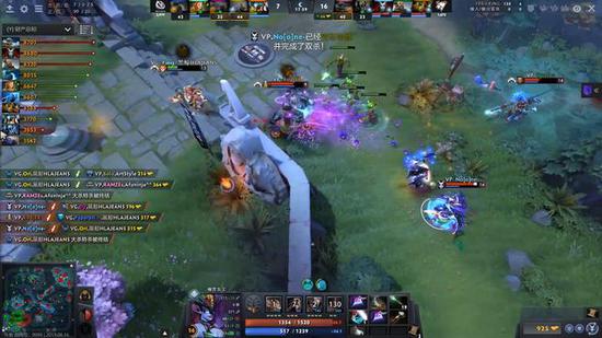 17分钟VG主动动手飞机,击杀飞机和VS。不过追击的时候被大牛和女王的大招反打,瞬间被融化。19分钟VP趁着VG这边没有技能和关键装备,直接拿下了第一代肉山盾。21分钟跳刀牛头第一波配合水人击杀VS,VP众人赶来支援,水人被船长标记直接变身女王B走 ,但是小牛被击杀。24分钟水人做出A杖,双方在下路符点撞雾。变身队友小牛后,飞天水牛加上小牛控制拉满,VG用小鹿一个人的买活,团灭对手。