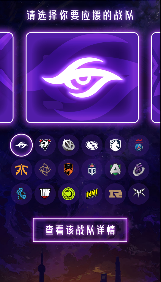 来自全球各地的十八支顶级战队齐聚上海,他们期待着支持自己的粉丝为战队加油呐喊。在活动页面,点击你喜爱的战队,即可查看战队详情!