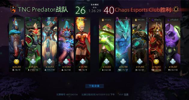 Chaos在今天的比赛中,先是不敌KG,之后与TNC展开激战,第二局苦战86分钟最终将比分扳成1:1。最后一轮,他们不敌Newbee,而在今天的比赛结束后,他们也提前确定无缘主赛事阶段的比赛。