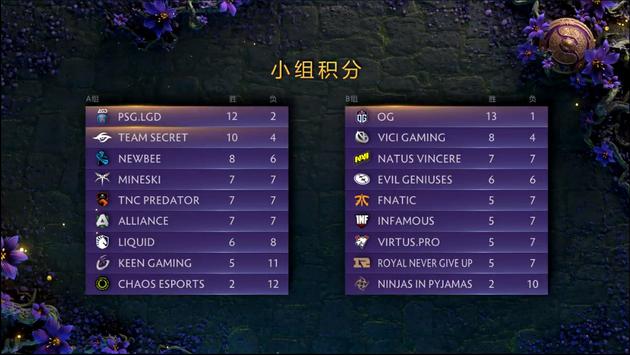 8月17日,2019DOTA2国际邀请赛小组赛已经结束了第三天的比赛,各队的晋级形势逐渐明朗。A组中,PSG.LGD赢得关键卡位战升至小组第一,B组中OG则是以13胜1负锁定了B组榜首。目前,各队积分情况如下:
