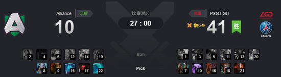 TI9国际邀请赛小组赛A组第九轮PSG.LGD对阵Alliance,已经锁定了小组赛头名的LGD也快乐起来了,四号位卡尔送出一局,随后认真模式吊打Alliance,战成平手。