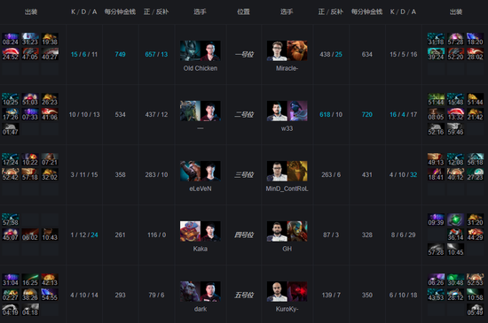 开局Gh拿到一血,KG下路二打三PA被杀,液体的鸡也被杀掉,TA无法补给,被小小打出一换一。五分钟中路大牛毒狗gank小小,没学踩被对方支援赶到,大牛自己死了。随后奇迹哥上路单杀猛犸。