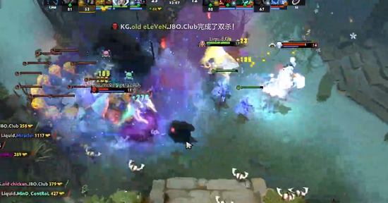 随后液体四处抓人,抓死KG三人后开始打盾,双方在肉山处打团,液体追到野区将KG团灭,拿到肉山盾。