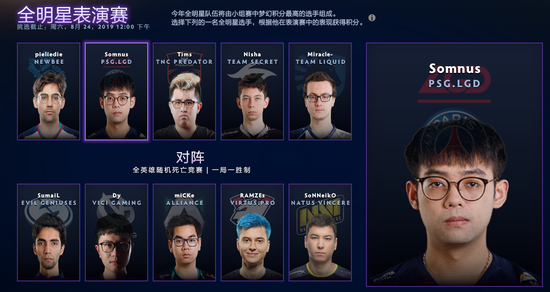 根据官方公告,本次TI9国际邀请赛的全明星表演赛将于8月23日举行。而和往年不同,今年参加全明星赛的选手全部都是根据他们在小组赛的表现来确定的——梦幻积分高的才能入选。(每队只能入选一人)而现在,DOTA2客户端内已经公布了全明星赛的阵容名单。