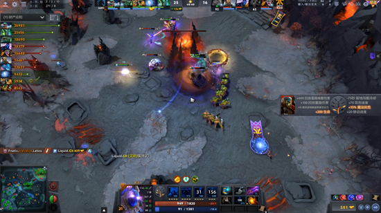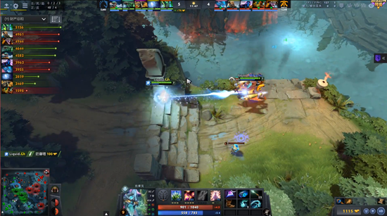 前期FNC的阵容明显比液体更加有战斗力,伐木机、TS和船长一过对线期就开始四处游走。而液体的应对也很到位,没有让FNC占到太多的优势。10分钟时两边的团队经济保持在一个均势。