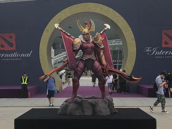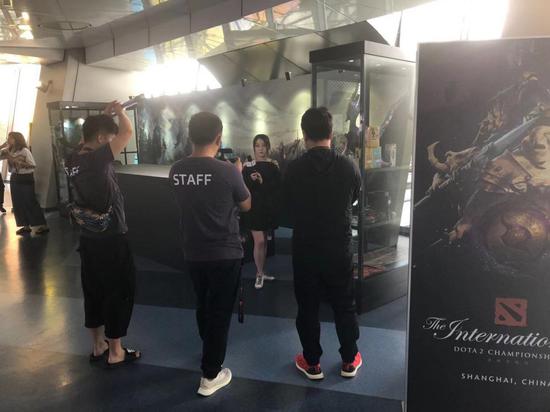 趁着比赛还没开始,我在外头转悠了一圈,出门的时候安检处会给你套个手环并敲个章,因为二层和五层看台的入口是分开的,而正门是在五层看台入口方向,神秘商店也在那,所以二层的观众不去正门转转TI之旅是不完整的。