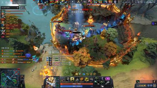23分钟OG强上高地,大圣在上高前放掉了大招。结果小牛大招打掉了大圣的盾,剑圣的大招斩死了小牛和小鹿,大圣掉盾后被火猫收割战场。26分钟双方在中路树林处开团,大树被先手买活。尽管小牛大招晕了四人,斯温大招BKB锤晕四人,但是明显输出不够,再次被OG团灭。