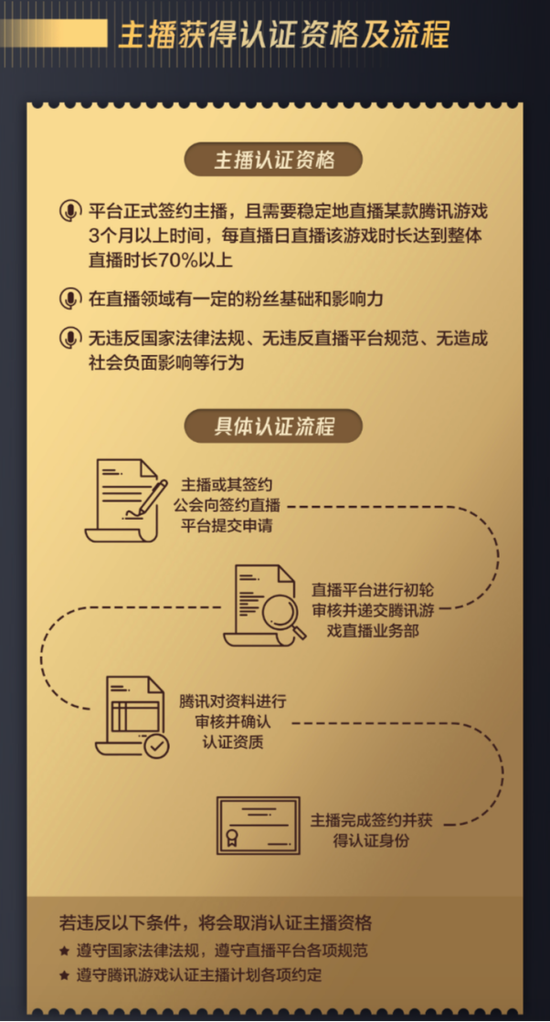当然,认证后的主播也需要更加注意自己的言行举止,腾讯希望认证的主播们也可以将更多的直播精力放在他们所签约的项目中来,一旦违反相关约定,主播们将被取消主播认证资格。