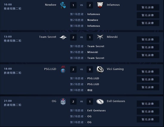 今天仍是有四组对决,激烈的比赛后,Newbee、Mineski告别了本届TI,PSG.LGD则是和OG再度在胜者组决赛相遇。全天比赛中又发生了什么呢?我们共同回顾。
