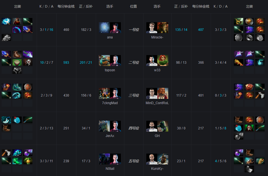 对线期,Liquid做出了调整让Miracle的TA走中,w33的米波则是去下路对小鹿骨法。上路在大牛的保护下,Ana的幽鬼前几分钟很舒服,而下路的米波有了老陈召唤的冰甲怪加持后,补刀数还是有保证的。