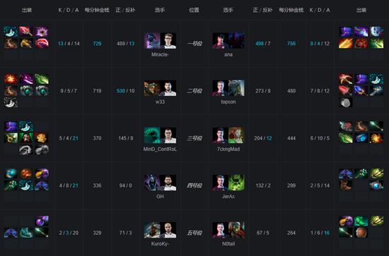13分半,OG继续发起进攻,在野区抓死了小Y,随后五人抱团冲到高地追死了潮汐和谜团,又转移到中路一塔击杀了TA,这一波节奏打了Liquid一个四人团灭,OG经济领先2K。