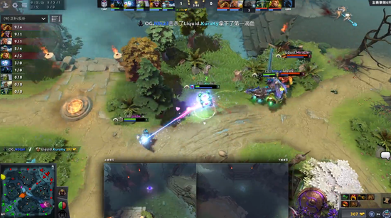 9分钟OG冲中路一塔,强杀了小Y和谜团,随后赶来支援的小狗也被带走,而OG只死了一个墨客。但这场团战还没完,足足打了两分钟,Liquid在复活之后反打了OG一个五人团灭。