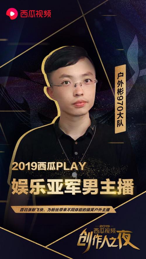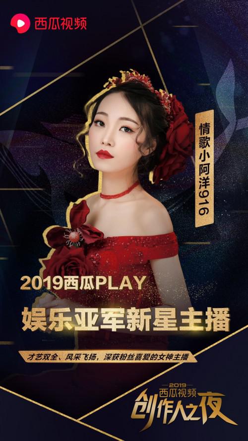 在竞争异常激烈的2019西瓜PLAY娱乐主播赛区,经过多轮PK,最终产生了铁锤姐姐258、靓声、如如如是我、户外彬970大队、玲玲小丫头、情歌小阿洋916等多名主播,他们分别拿下了娱乐女主播、娱乐男主播、娱乐新星主播等奖项。