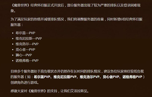 8月27日,《魔兽世界:怀旧服》面向所有玩家开放,不过服务器似乎难以抵挡助众多WOWer热情,全区服爆满,即便官方加开几组服务器玩家仍需要排队等待几小时才能进入,特别是对于有工作的老玩家来说,下班回到家还要等待几小时排队才能玩非常不方便,毕竟晚上还要休息的,白天才有精神赚钱充卡恰饭。