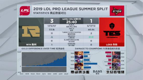 2019年LPL夏季赛半决赛,RNG战队3-1战胜TES,保持了半决赛BO5的100%胜率,队史第七次打进LPL决赛。他们将与FPX在夏季总决赛中角逐最后的冠军奖杯。