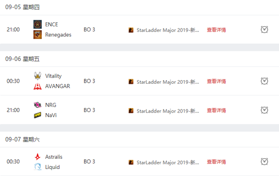 此外,ENCE战队将对阵Renegades,Vitality对阵AVANGAR,而NRG则将面对NaVi。