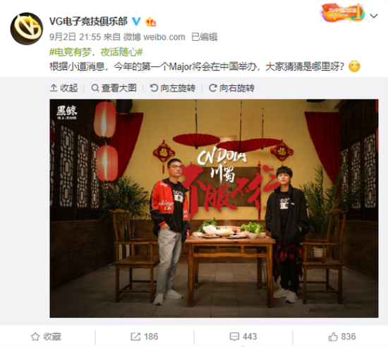 VG官博放出小道消息,今年第一个Major将会在中国举办,并配上一张川蜀火锅的图片,这基本可以算是明示了。